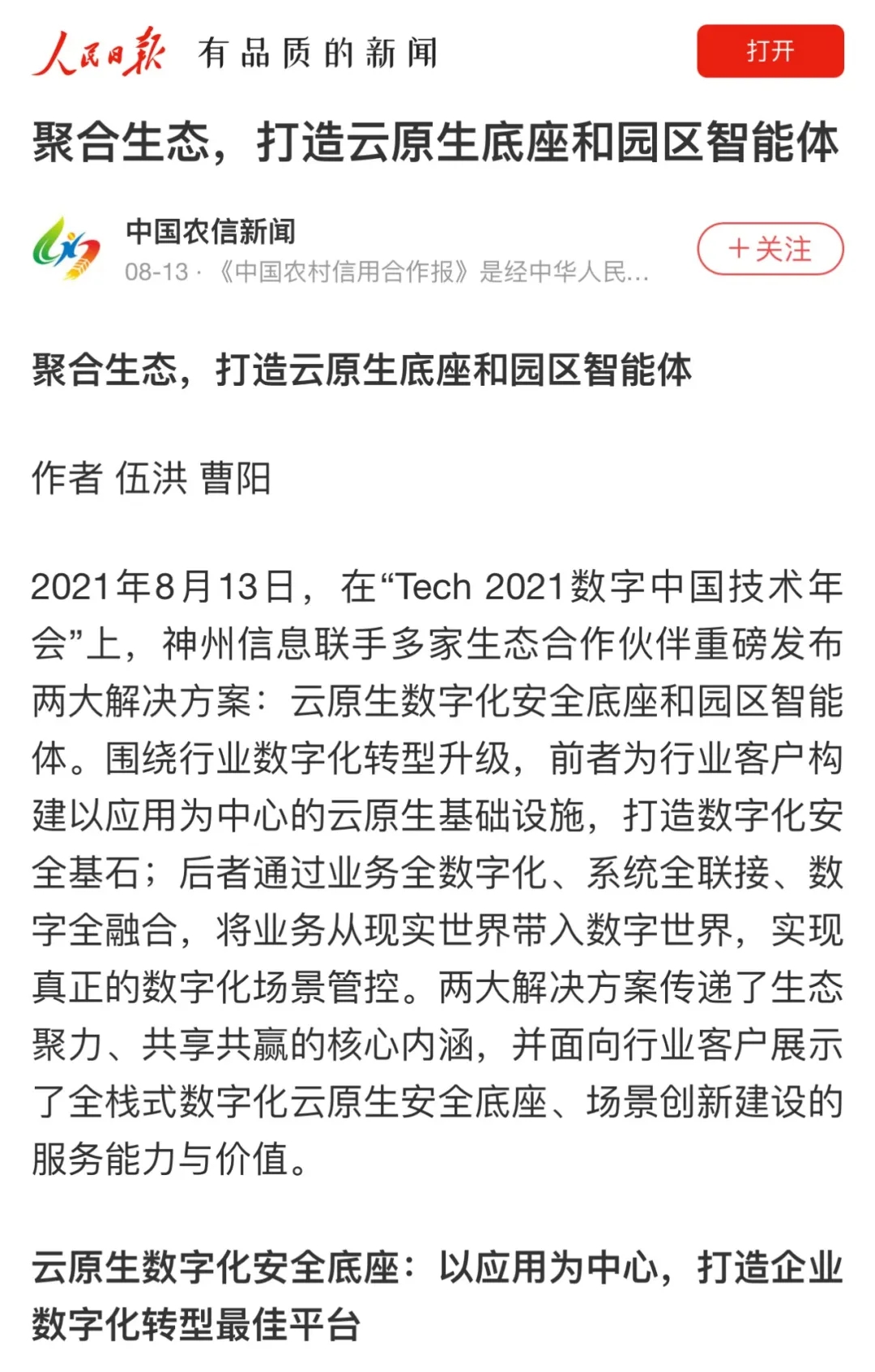 神州信息聚合生态 打造云原生底座和园区智能体