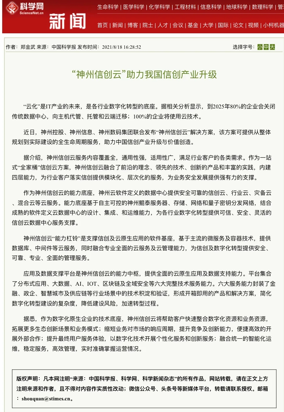 神州控股、神州信息、nangong28.com集团合力打造 “神州信创云”启航